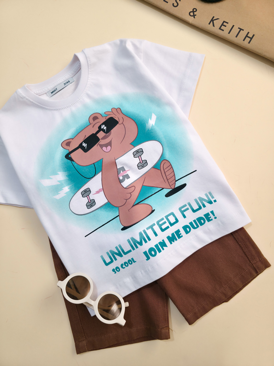 تیشرت تک برند مانکی طرح تدی- سایز 3تا6