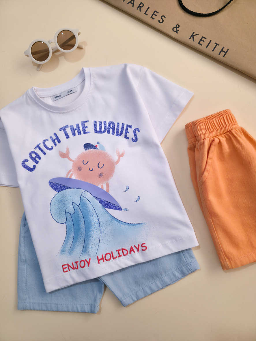تیشرت تک برند مانکی طرح موج- سایز 3تا6