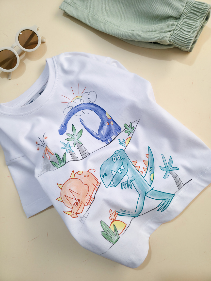تیشرت تک برند مانکی طرح 3 داینو- سایز 3تا6