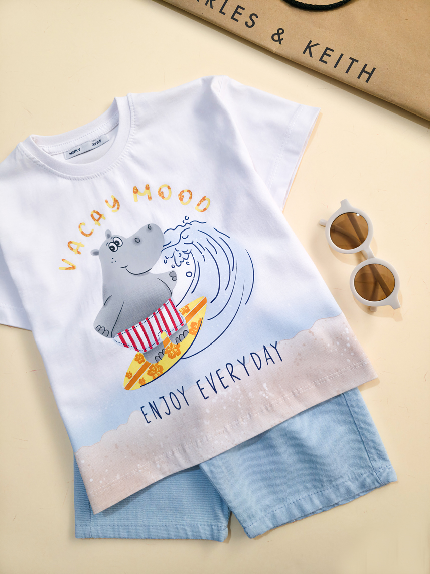 تیشرت تک برند مانکی طرح اسب آبی- سایز 3تا6