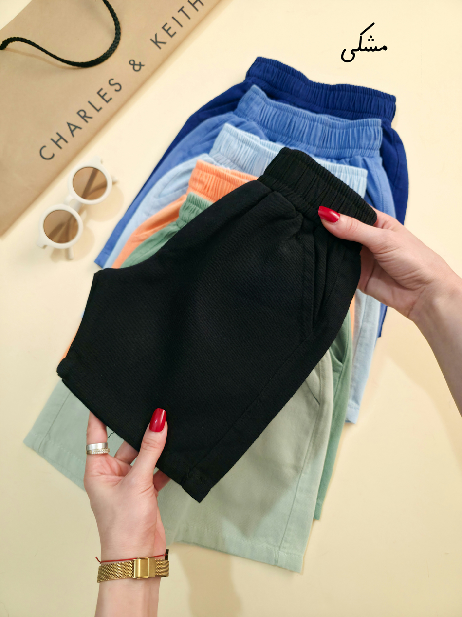 کتان کجراه نرم و لطیف از برند مانکی، سبک و نرم ، خوش پوش و راحت، دخترونه و پسرونه، شلوارک بچگانه، رنگ ها ممکنِ بسته به گوشی شما تا 20 درصد متفاوت دیده بشن
