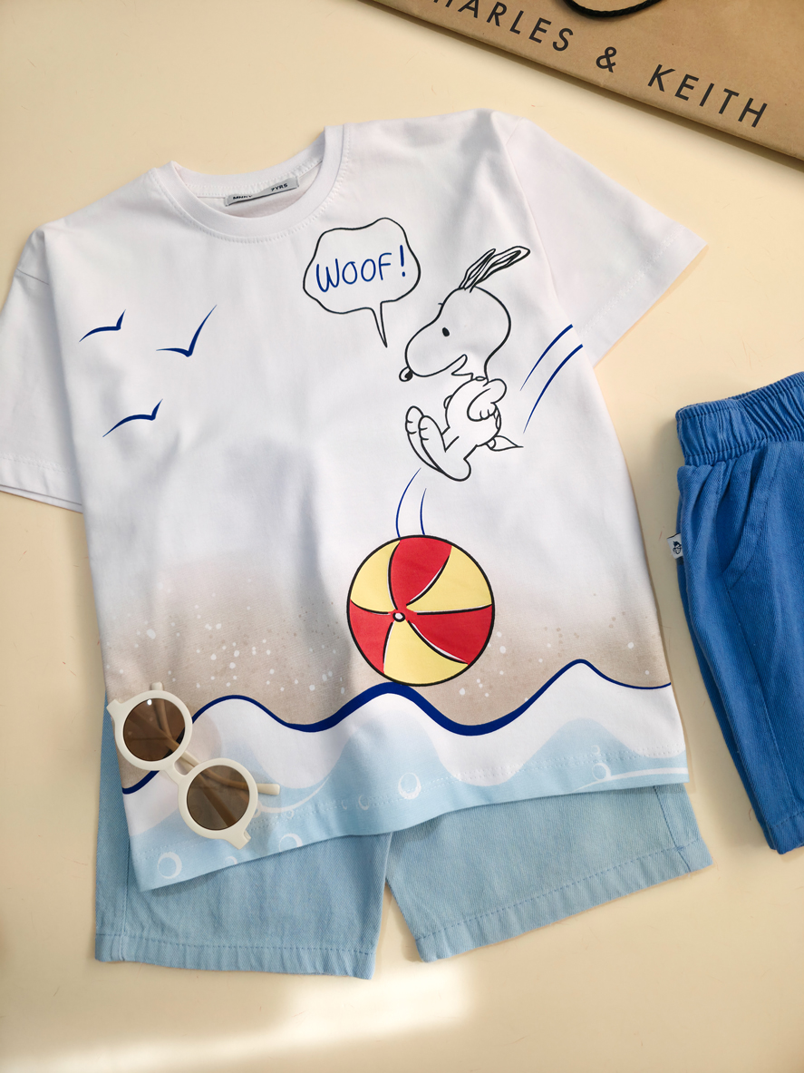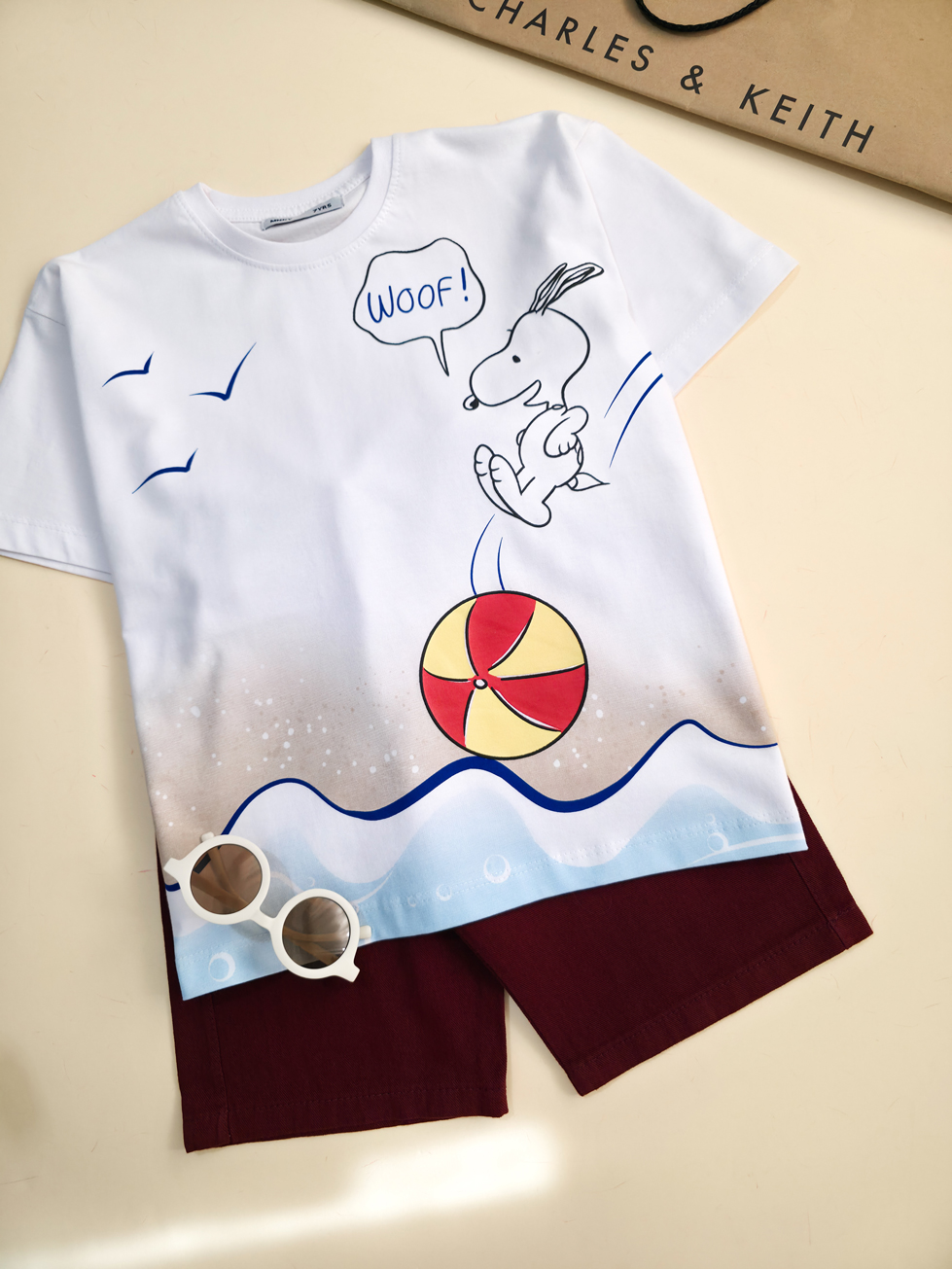 تیشرت تک برند مانکی طرح اسنوپی-سایز 7تا10