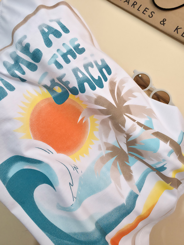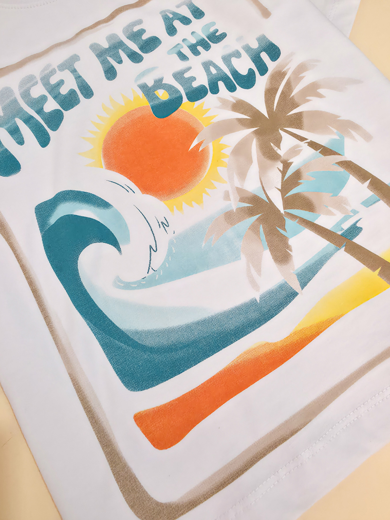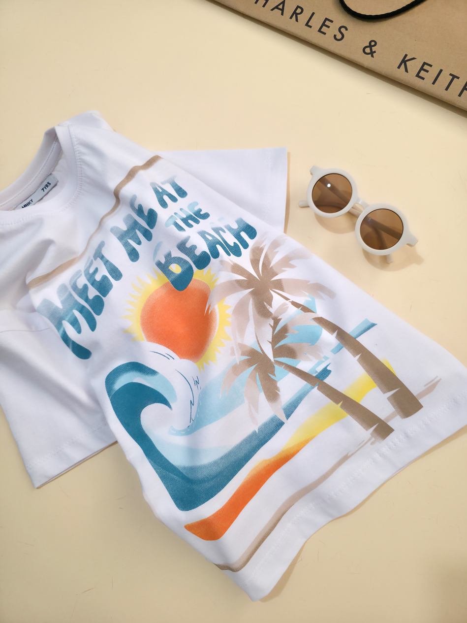 تیشرت تک برند مانکی طرح نخل و خورشید-سایز 7تا10