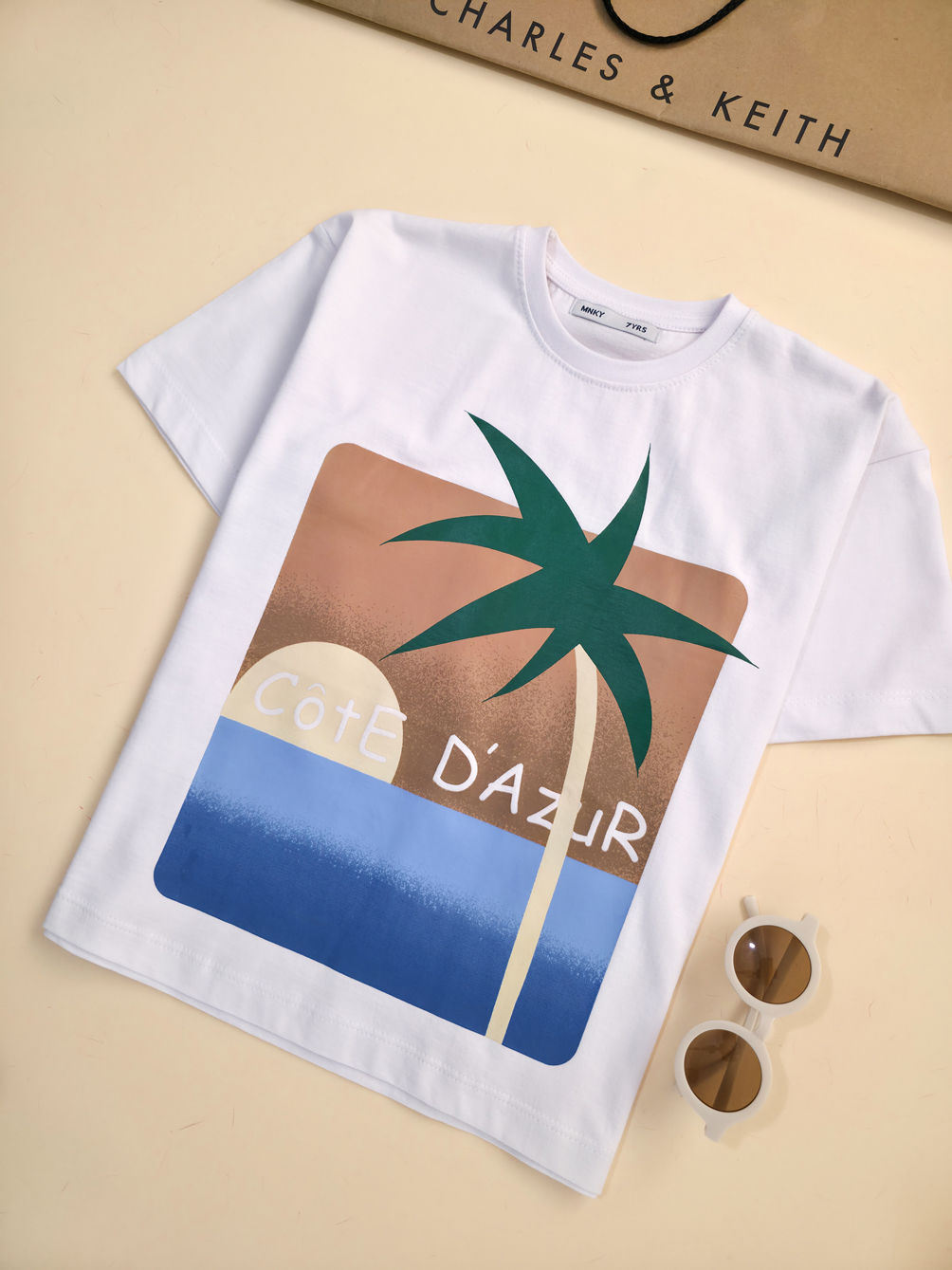 تیشرت تک برند مانکی طرح نخل سبز-سایز 7تا10
